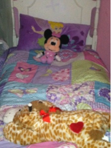 I Stayed up pretty late just enjoying the perfect calm summer evening. Got a little carried away reading a book. When I finally went to bed this is what I found. Also just to prove they really have their own beds I took a picture. AND the beds are still made up. I guess that is one less morning chore!!